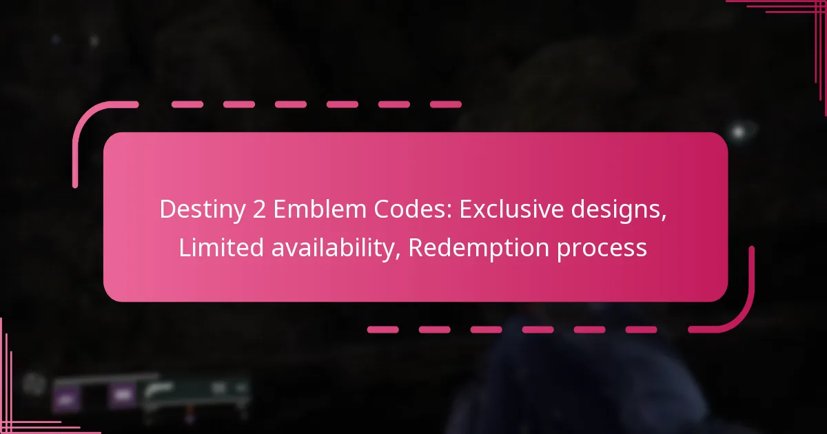 The redemption process for Destiny 2 Emblem Codes involves entering unique codes to unlock exclusive in-game designs. These codes are often limited in availability and can be redeemed through specific platforms associated with the game.
